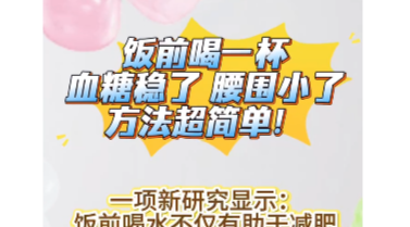 饭前喝一杯血糖稳了、腰围小了!方法超简单!