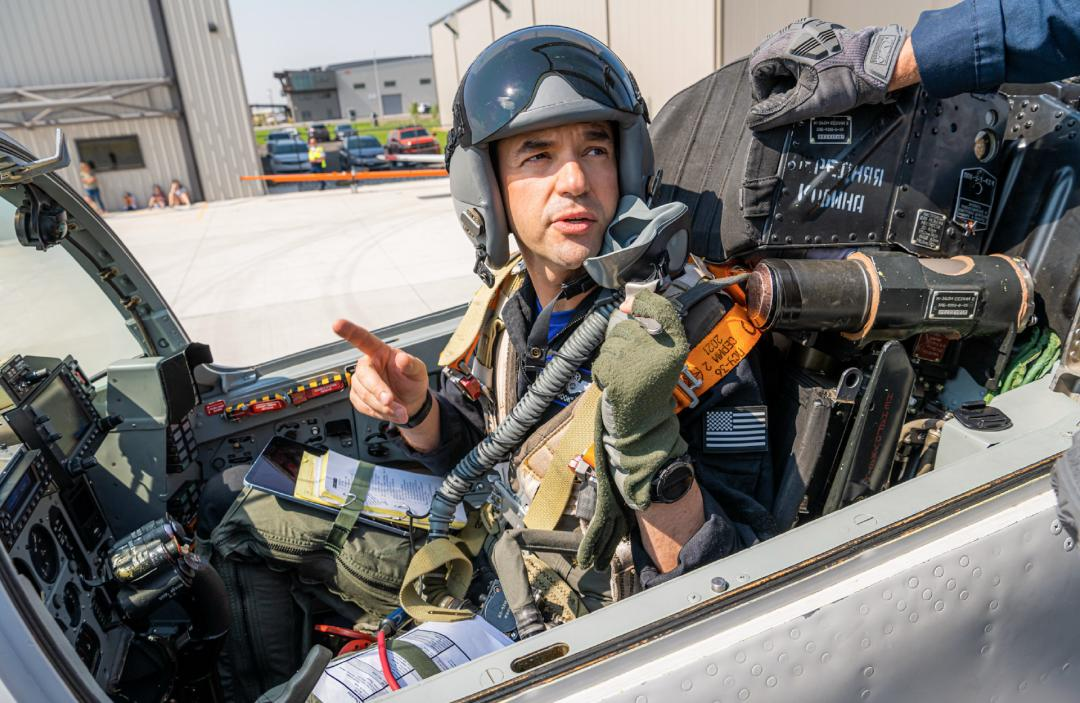 艾萨克曼在战斗机里,他有超过8000小时飞行经验 | 图源:艾萨克曼社交媒体