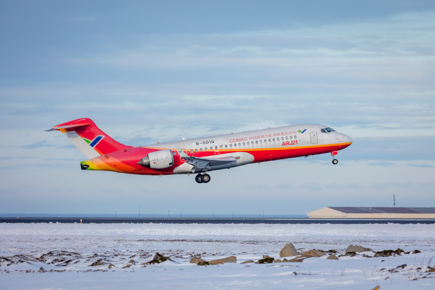 在适航认证方面,C909严格遵循中国民用航空局和美国联邦航空局等国际机构的标准体系,完成了一系列覆盖结构、动力、操控、航电、可靠性、极端环境以及运行保障能力的系统性试验。这既是对飞机本身的验证,也构成了中国航空工业适航能力体系的初次成型。
