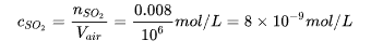 ,为了计算0.2ppm对应的物质的量浓度,只需将二氧化硫的体积换算成物质的量即可: